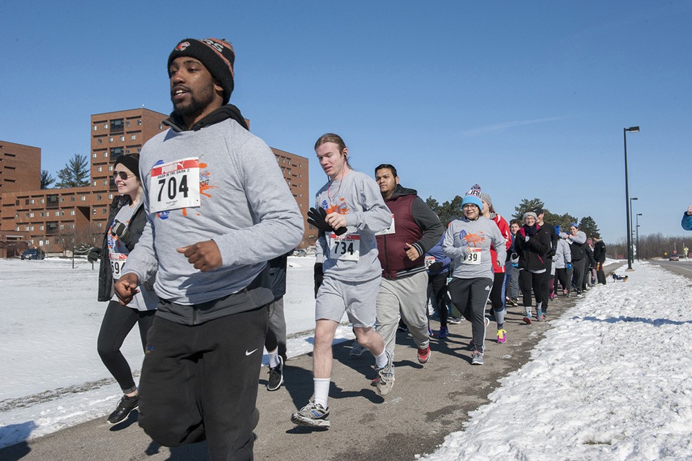 Students, faculty and staff braved the cold March 5 to participate in Ellieâs 5k Run/Walk, in honor of former RIT/NTID staff member Ellie Rosenfield. Participants also were involved in games of skill, yoga and other activities throughout the day. Eleanor (Ellie) Rosenfield, associate dean for Student and Academic Services at RIT/NTID, died on March 7, 2010, after a two-year battle with lymphoma. -