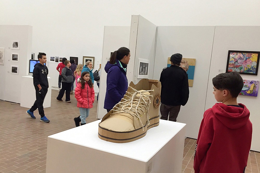 Students, families and friends crowded Bevier Gallery on Jan. 27 for an opening reception. The 2017 Rochester Regional High School and Middle School Exhibition is on view in Bevier Gallery through Feb. 11. Students in art programs from Rochester and the Finger Lakes area are showing examples of painting, photography, ceramics, metal, drawing and more. -