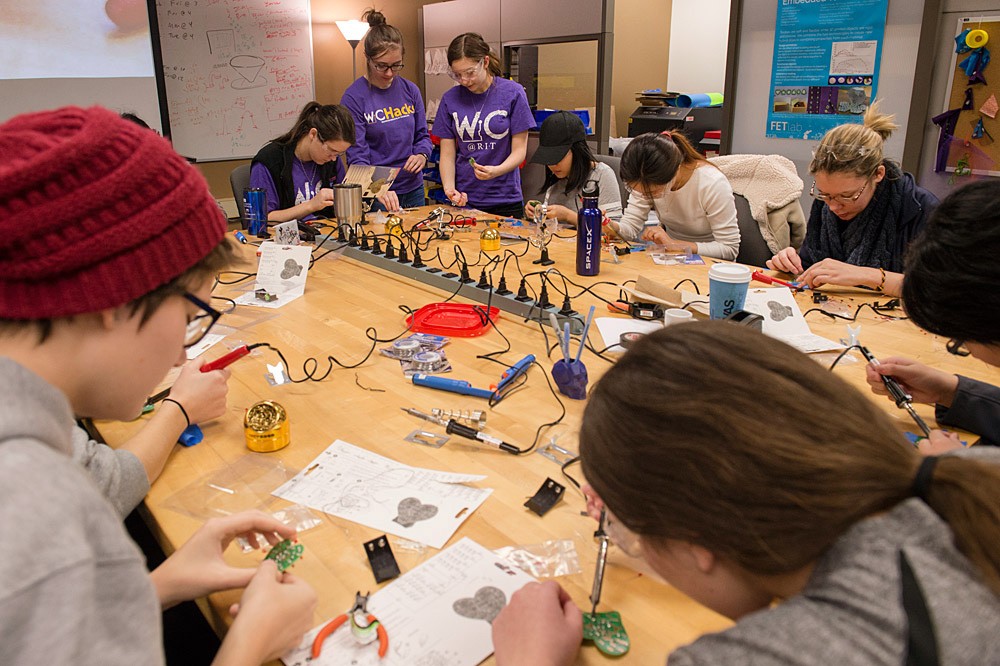 Members of RITâs Women in Computing group worked with local Girl Scouts on Jan. 28 to learn about web development and creating smart devices. WiC is dedicated to promoting the success and advancement of women in their academic and professional careers and works with young women in K-8, prospective students in high school and current students at RIT. -