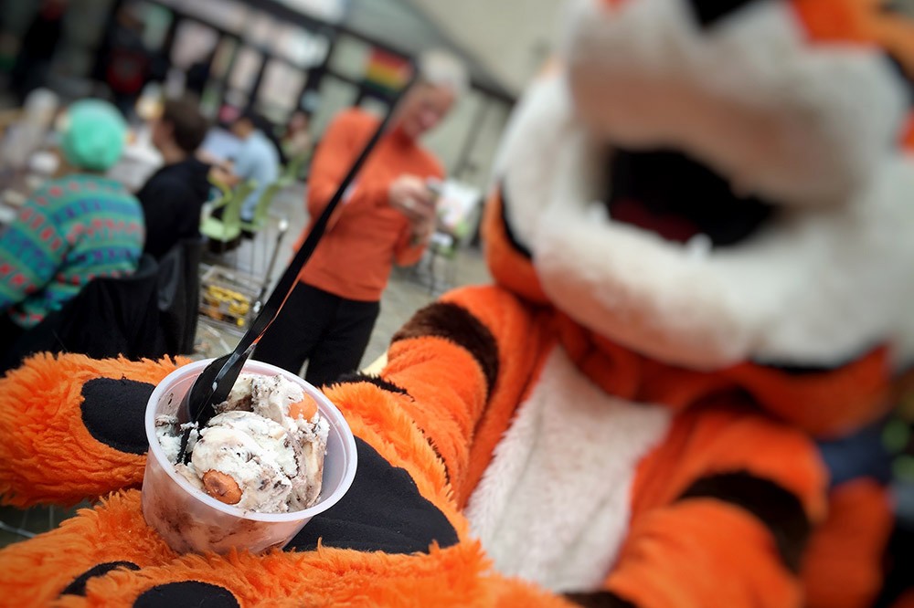 RIT Tiger Tracks is the signature ice cream flavor created by Perryâs Ice Cream. Samples were served at a pop-up event in the Student Alumni Union Dec. 8. The flavor is a sweet vanilla ice cream base with thick fudge swirls and orange pretzel balls. It will be served at Gracieâs, Solâs Underground, a new ice cream cart at the Gene Polisseni Arena and at a local ice cream eatery, LuGiaâs in Spencerport. -