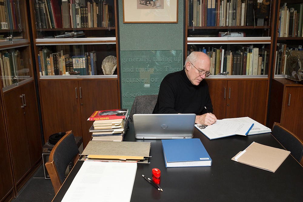 Robert Bringhurst spent some time in the Cary Graphic Arts Collection during his visit at RIT. Bringhurst, a leading poet, author and typographer, received the 2016 Frederic W. Goudy Award on Nov. 17. The annual award is given to an outstanding practitioner in type design and its related fields. The Goudy Award was established in 1969 by a gift from the Mary Flagler Cary Charitable Trust. The award pays tribute to the friendship between Melbert B. Cary Jr. and Frederic Goudy, who produced upwards of 123 typefaces and was one of the most widely recognized figures in American printing. -