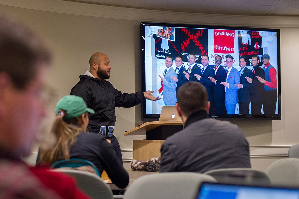 Fifth-year mechanical engineering student and president of the Lambda Sigma Upsilon fraternity Hector Terrero shared personal thoughts on inclusion and diversity at an open forum. The dialogue was in the Stan McKenzie Commons in the College of Liberal Arts and included several other speakers. -