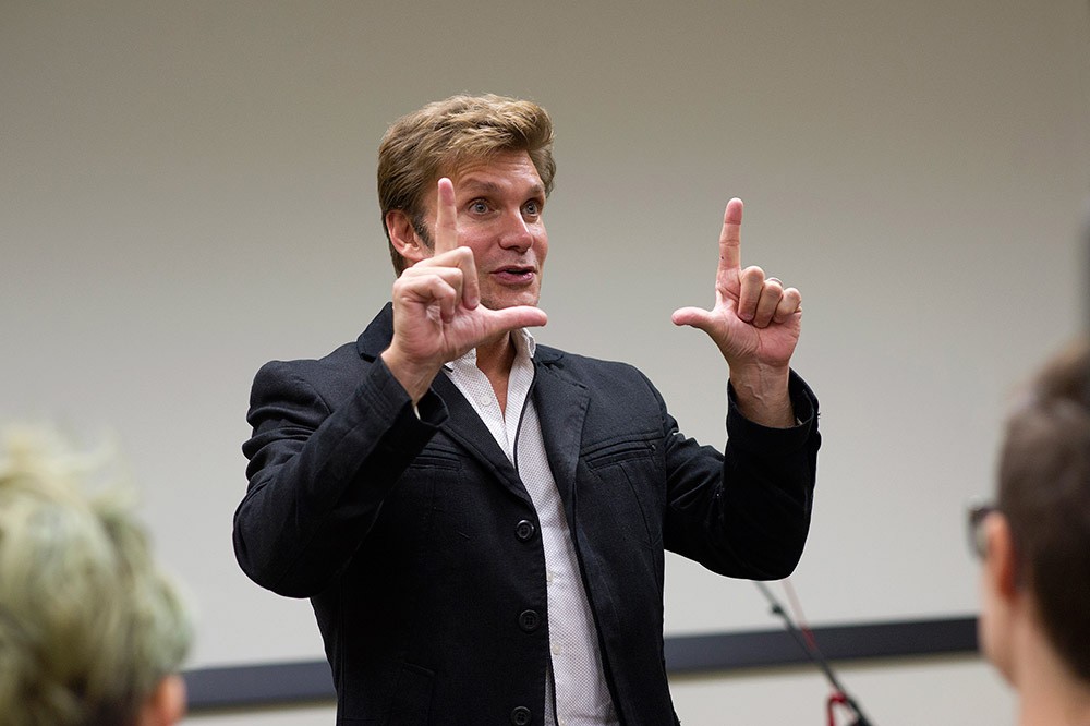 Vic Mignogna, who plays Capt. Kirk on the online series Star Trek Continues, visited RIT Sept. 9. The actor, director and executive producer met with film and animation students as a collaboration with the College of Liberal Artsâ performing arts department. He discussed music composition for the film and animation business. -
