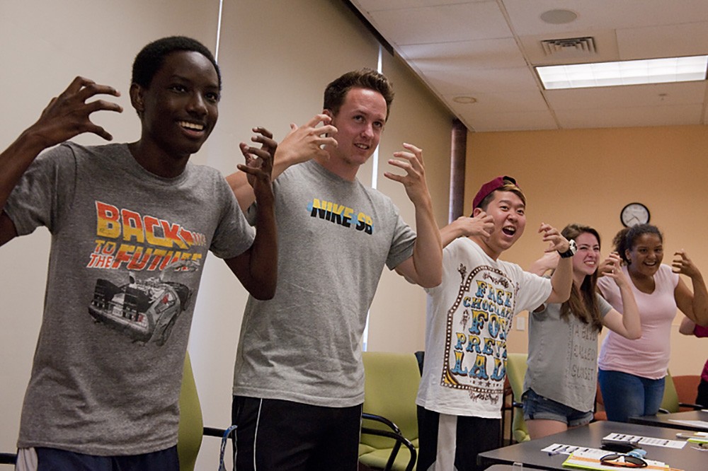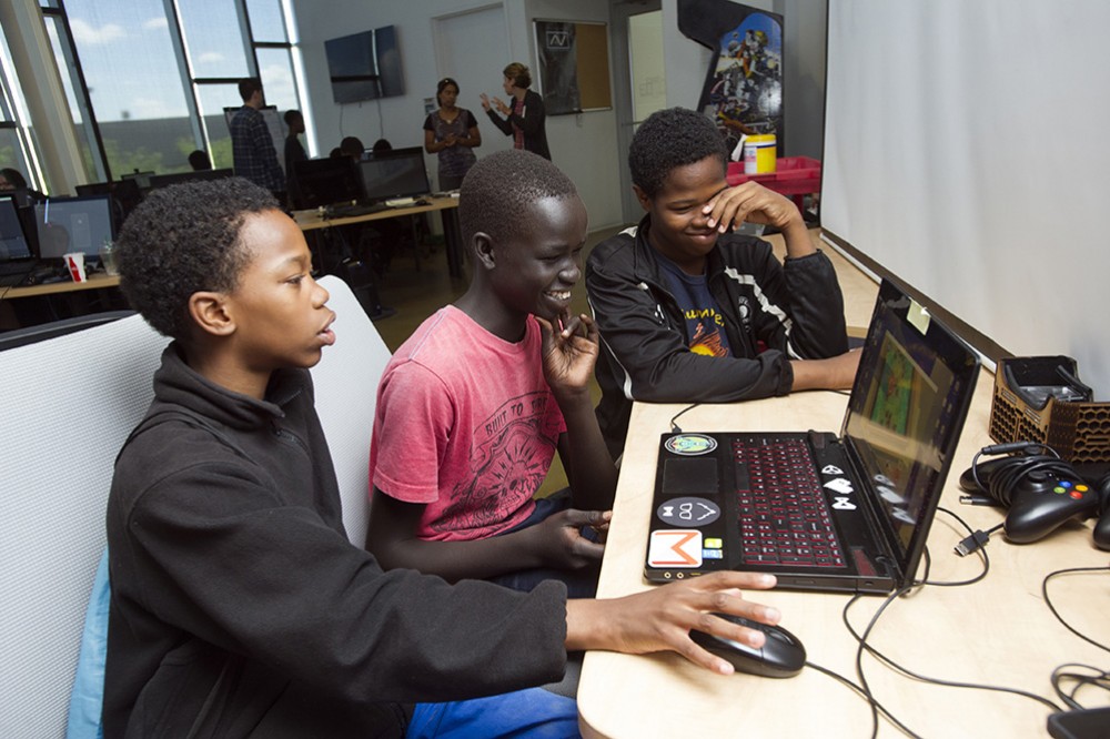 From left, Robert Adams, Yaak Awuok and Christian Culmer tested games created by RIT students on Aug. 2. The Thomas P. Ryan Community Center and Sully Branch-Rochester Public Library âSafe to be Smartâ youth visited RITâs Center for Media, Arts, Games, Interaction and Creativity (MAGIC) to play test games created by summer Co-Up students. The teens came to campus to begin work on their play testing âbadgesâ designed by the Center for MAGIC as part of the LRNG initiative, a grant the City of Rochester received to facilitate in-school and out-of-school learning. In 2016, Rochester joined 12 other U.S. cities to launch its own pilot program where young people can explore learning opportunities in their communities.