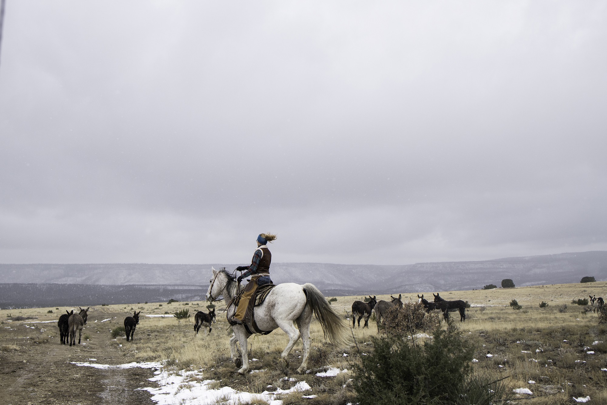 Ranch technician Jessica Seifert drives a herd of burros through a pasture at Philmont Scout Ranch in New Mexico, where Marielle Scott '23 spent time working on the marketing team. “I have been horse-obsessed since I could talk,” Seifert said. “I rode my first horse when I was 5 and I started taking lessons regularly when I was nine.” At Philmont, Seifert knows the names of all 180 horses and takes pride in her care for them.