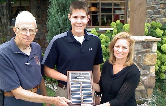 Matt Purcell, center, recipient of the 2011 Howard Freckleton and Roy Hamel Endowed Scholarship, stands with Jon Freckleton, son of Howard Freckleton, and Moira Hamel, wife of Roy Hamel.