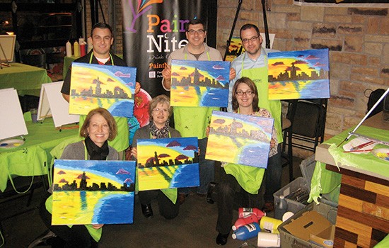 Alumni gathered at Red Ivy in Wrigleyville for Paint Nite on April 3. They ate, drank and painted their Chicago Skyline masterpieces.