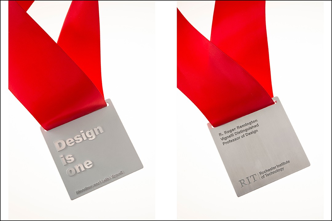 Also RIT’s first Vignelli Distinguished Professor, Remington was presented the Massimo and Lella Vignelli Distinguished Medal during the event, attended by faculty and staff as well as RIT President David Munson and Ellen Granberg, Provost and Senior Vice President for Academic Affairs.