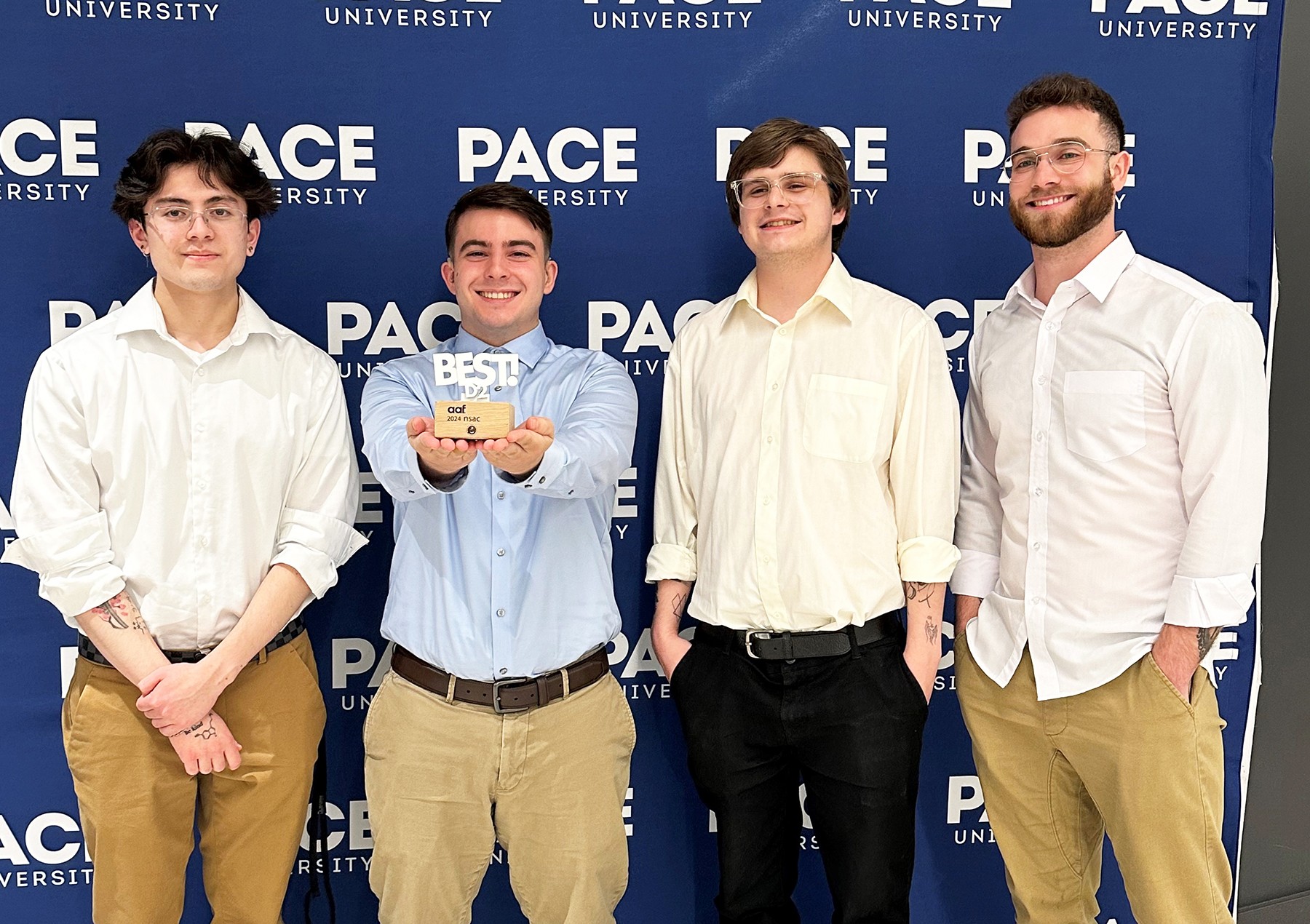 Four advertising and public relations majors represented RIT in its debut at the annual American Advertising Federation (AAF) National Student Advertising District 2 Competition held April 20 in New York City. Recognized for skillfully answering the judges’ questions and leaving no question unanswered, the team won the “Best Q&A” award and placed fourth overall, beating out legacy participants.