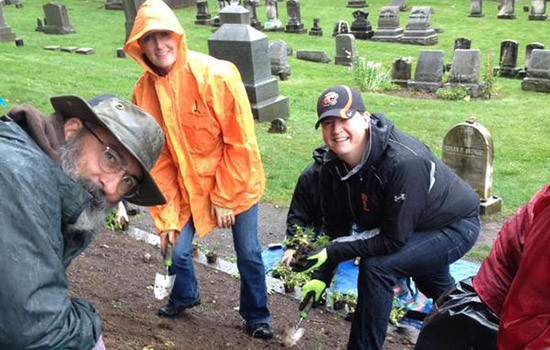 Last year Rochester alumni volunteered to help tend the grounds at Mount Hope Cemetery.