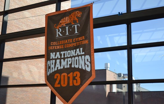 A new banner hanging in Golisano Hall at Rochester Institute of Technology proves that defense really does win championships, especially when it comes to cyber security.