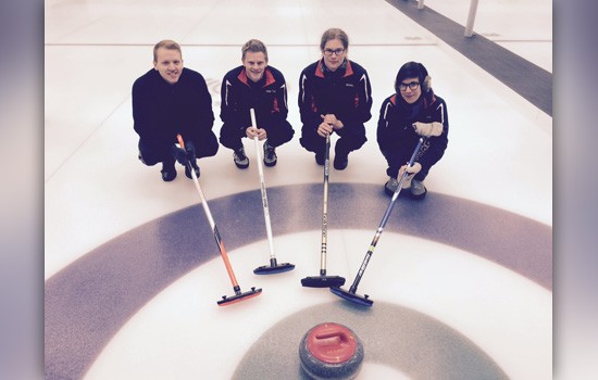 RIT Curling Club members competing in the USA Curling College Championship are (left to right): Jim Bogardus, Chris Haluszczak, Sean White and Emily Cali. Missing from photo is Hannah Ely.