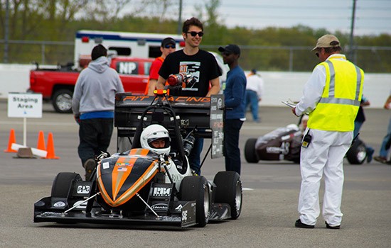 RIT Racing, the Formula SAE race team at the Rochester Institute of Technology, sped to a ninth-place overall finish in Formula Student Michigan at Michigan International Speedway this past weekend. Formula Student Michigan is the largest and most prestigious national collegiate design competition in North America, and RIT Racing was among 125 international teams from universities in the U.S. as well as Canada, Austria, South Korea, Singapore, Germany, Mexico, Venezuela and Brazil. The team also took top-20 placements in the autocross and endurance events and received a team design award for one of its engine systems.