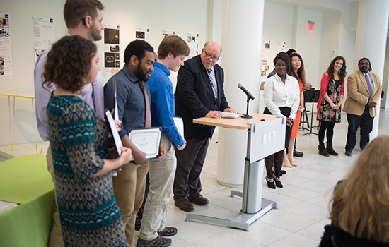 Several RIT criminal justice majors were recognized Friday for leadership and success by John Klofas, director of RIT's Center for Public Safety Initiatives.