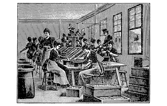 Manufacture of albumen paper in Dresden, ca. 1890. The first step is to separate the eggs.