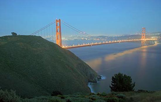 This image of the Golden Gate Bridge from Mark Fairchild’s High Dynamic Range Photographic Survey was captured approximately 30 minutes after sunset with a series of nine bracketed exposures. The image is rendered for low-dynamic-range displays or printers using an iCAM-based model of local adaptation in the human visual system.