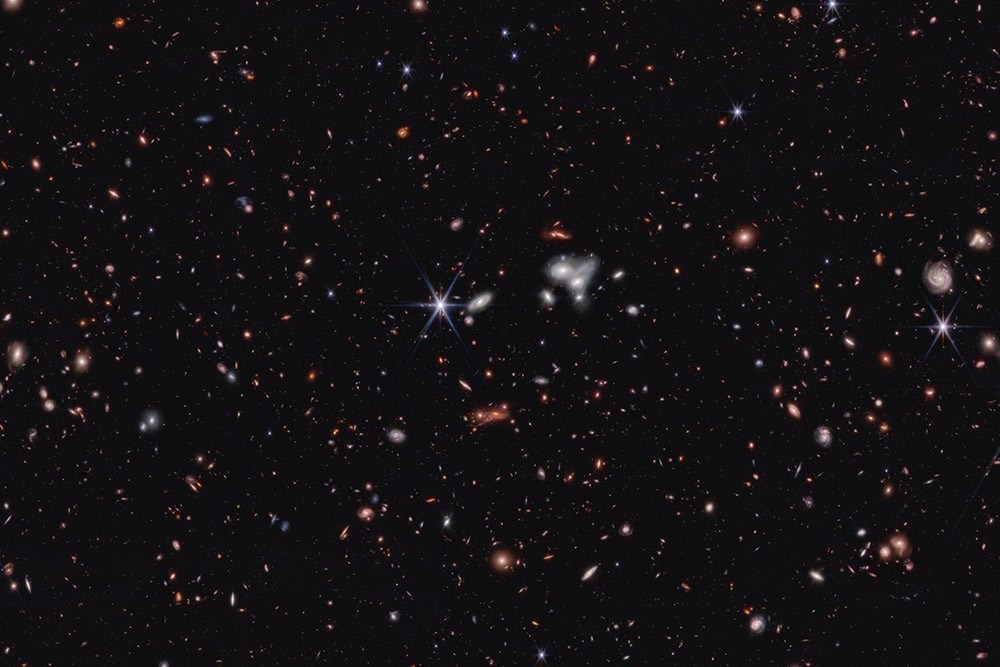 The team published several initial papers about CEERS Survey data in a special edition of The Astrophysical Journal Letters released on July 6: “A CEERS Discovery of an Accreting Supermassive Black Hole 570 Myr after the Big Bang: Identifying a Progenitor of Massive z > 6 Quasars,” led by Larson; “Hidden Little Monsters: Spectroscopic Identification of Low-Mass, Broad-Line AGN at z > 5 with CEERS,” led by Dale Kocevski of Colby College; “Spectroscopic confirmation of CEERS NIRCam-selected galaxies at z≃8−10,” led by Pablo Arrabal Haro of NSF’s NOIRLab; and “CEERS Spectroscopic Confirmation of NIRCam-Selected z ≳ 8 Galaxy Candidates with JWST/NIRSpec: Initial Characterization of their Properties,” led by Seiji Fujimoto of the University of Texas at Austin.