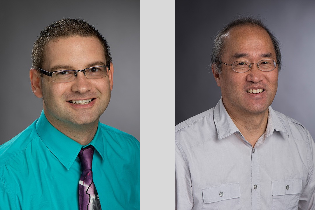 Cristian Linte, left, associate professor of biomedical engineering in RIT’s Kate Gleason College of Engineering, and Niels Otani, associate professor in RIT’s School of Mathematics.