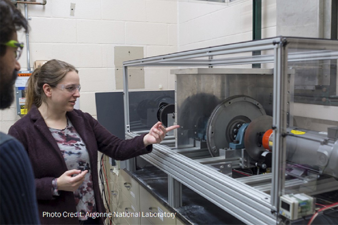 Accelerate Wind founder Erika Boeing shows off the company’s wind turbine drivetrain technology being tested at Argonne National Lab. Accelerate Wind, a Venture Creations company, has been awarded a million-dollar grant from the National Science Foundation to further its development of low-cost wind energy generation.