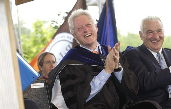 President Bill Clinton, left, shown beside RIT Trustee Tom Golisano, delivered the keynote address at RIT\'s 122nd Academic Convocation and Commencement May 25.