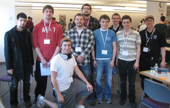 RIT took first place in the Northeast Collegiate Cyber Defense Competition March 4-6. The RIT team is made up of Brandon Mauer, left, John O’Connor, Alex Levinson, Todd Straceski, Alex Shagla-McKotch, Jacob Ruppal, Griffith Chaffee, Tom Kopchak and coach Bill Stackpole.