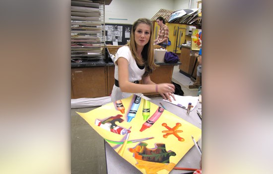 Emily Gallagher works on her artwork at Fairport High School.
