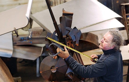 Albert Paley works on a miniature version of the Sentinel in his studio in 2003.