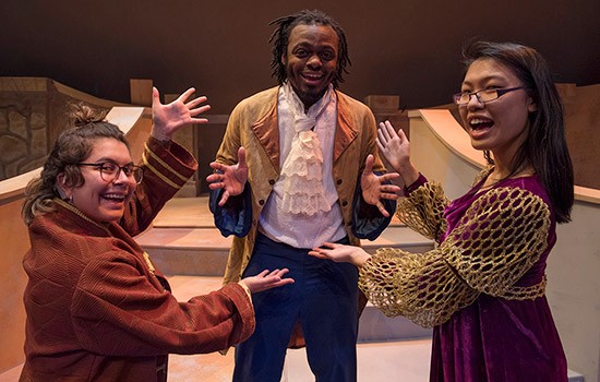 Kendall Charles, center, has a lot of fun with his cast members during rehearsal.