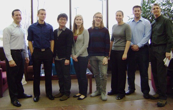 The redesigned package for Planters Peanuts was the winning entry in the recent American Packaging Corp./Kraft Product Design Challenge. From left to right: John Blake, manager, packaging research department at Kraft Foods; Marc Priddy (industrial design); Hong Ying Guo (packaging science); Vicki Julius (graphic design); Andrew Lakata (graphic design); Keelyn Nori (packaging science); Isaac Alves (industrial design); and David Geier, Rochester operations manager for American Packaging Corp.