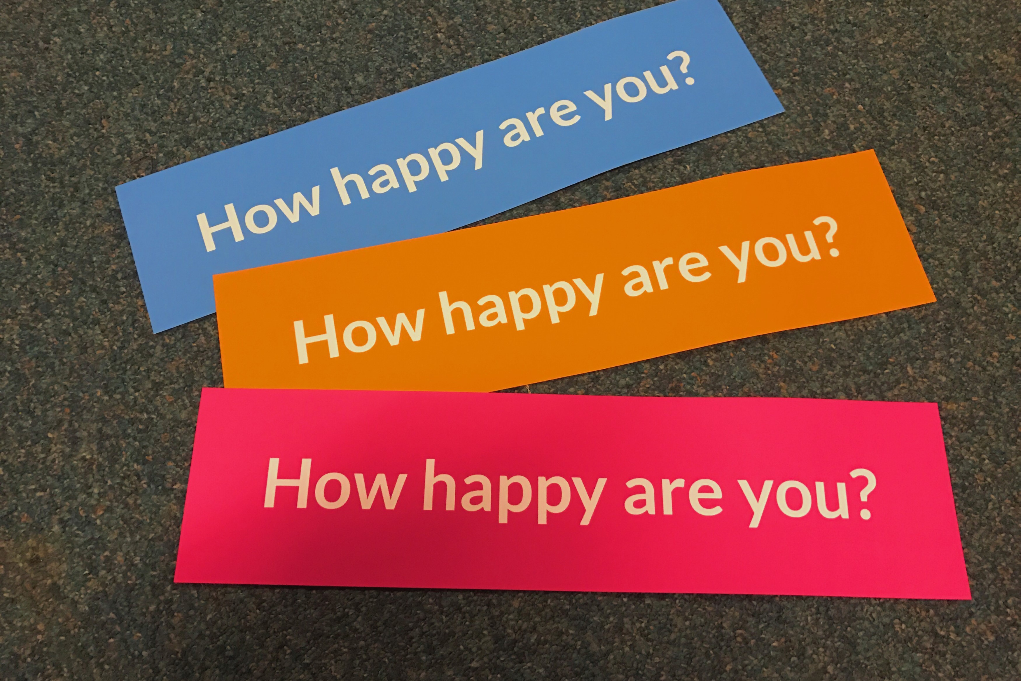 A group of School of Design and School of Interactive Games and Media seniors collaborating on a project is interested in knowing how happy you are.