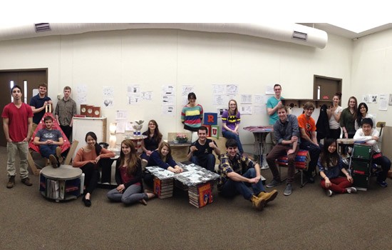 A class of industrial design majors turned old library materials and other reclaimed materials into pieces of furniture.