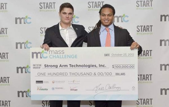 Rochester Institute of Technology students Justin Hillery and Sean Petterson, the co-founders of Strong Arm Technologies Inc., out flexed their entrepreneurial muscle in competition, winning $100,000 in the MassChallenge startup business contest.