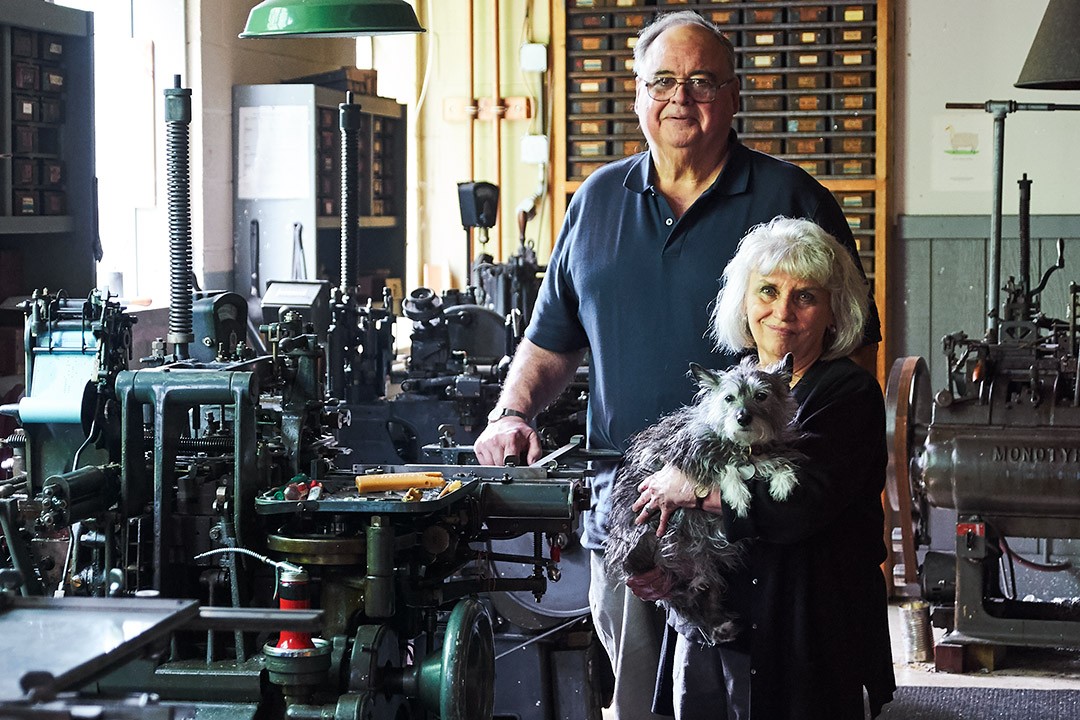 Michael and Winnie Bixler, both 1969 graduates, run Bixler Press and Letterfoundry in Skaneateles, N.Y. “I think one of the greatest things we took away from RIT is meeting each other,” Michael said.