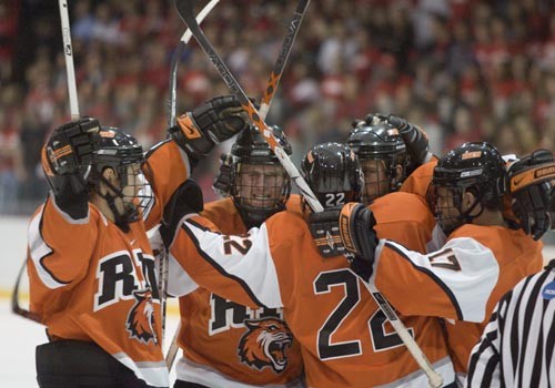 The pep rally will begin at 6:30 p.m. in Clark Gymnasium. Wilson will address the crowd and the entire team will be present. RIT’s Pep Band will perform and the “Corner Crew,” the Tigers’ boisterous fan group, has received a special invitation to attend the pep rally. “This is really going to be a great RIT community event,” says Kolnik, who anticipates somewhere between 300 and 500 people to be in attendance. “We feel it’s a great way for the RIT community to connect with the hockey team.” Kolnik says there will be two buses available to transport students to and from the next day’s game. She hopes a large contingent of the RIT community turns out at Blue Cross Arena to support the Tigers, joining others from the Rochester community and the Cornell fan base to pack the arena.