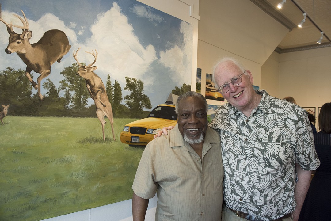Above: Luvon Sheppard, left, with former RIT MST in art education program director and professor Tom Lightfoot at the MST in art education program's capstone show last month. Joy Gallery, owned by Sheppard, housed the show.