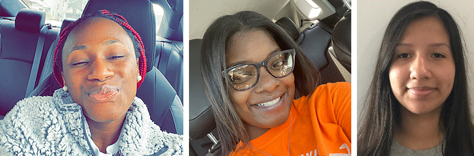 Co-op student designers (left to right) Armani Moore, Bee DePrince, and Angelica Arteaga