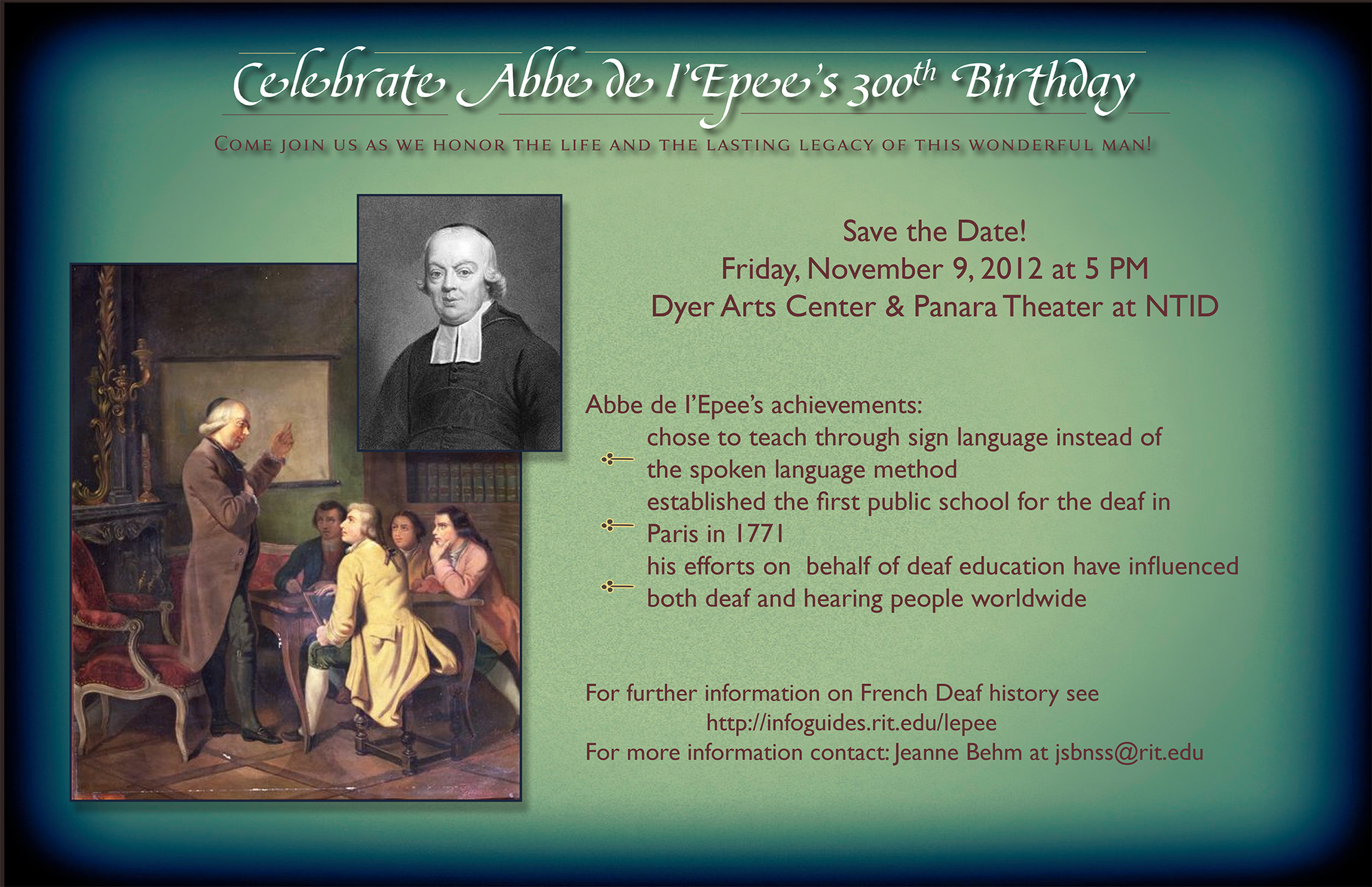Several of the NTID banquets are held in honor of the Abbé de L’Epée, founder of the first school for the deaf in Paris.
