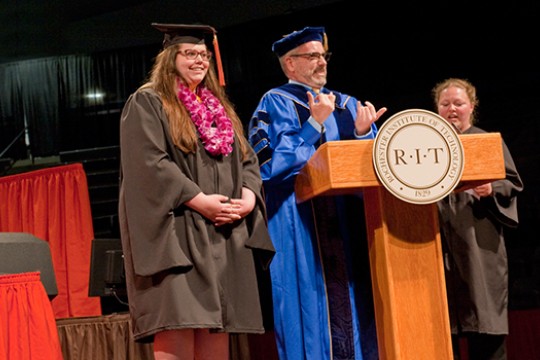 Four NTID students were enrolled in the Rochester Bridges to the Doctorate program, which helps deaf and hard-of-hearing students earn doctoral degrees in STEM disciplines. -