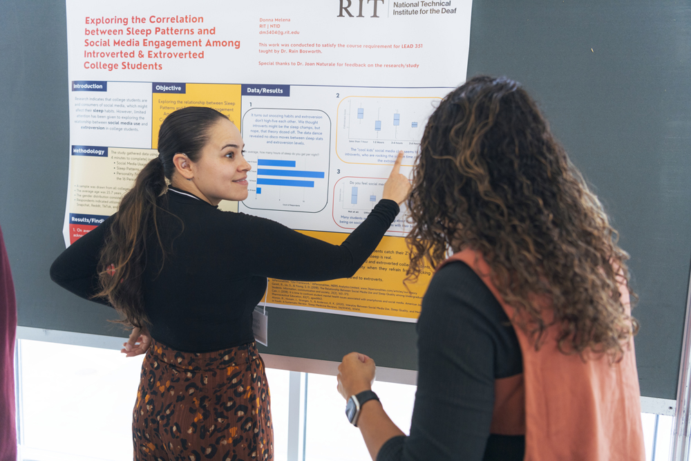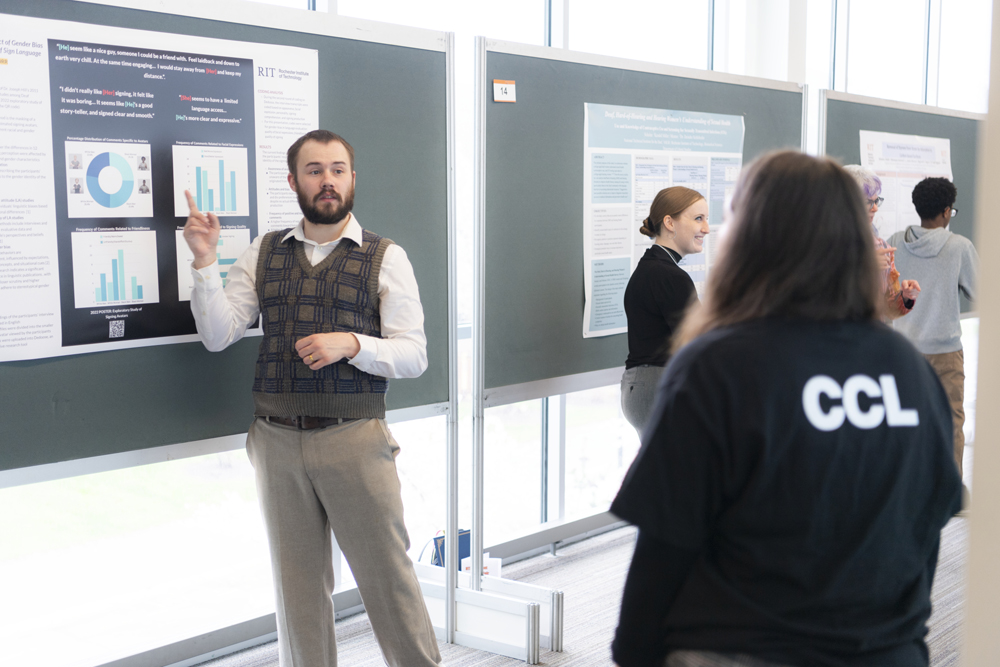 The NTID Student Research Fair was held on April 12, 2024, 10 a.m. - 12 p.m. in Rosica Hall.