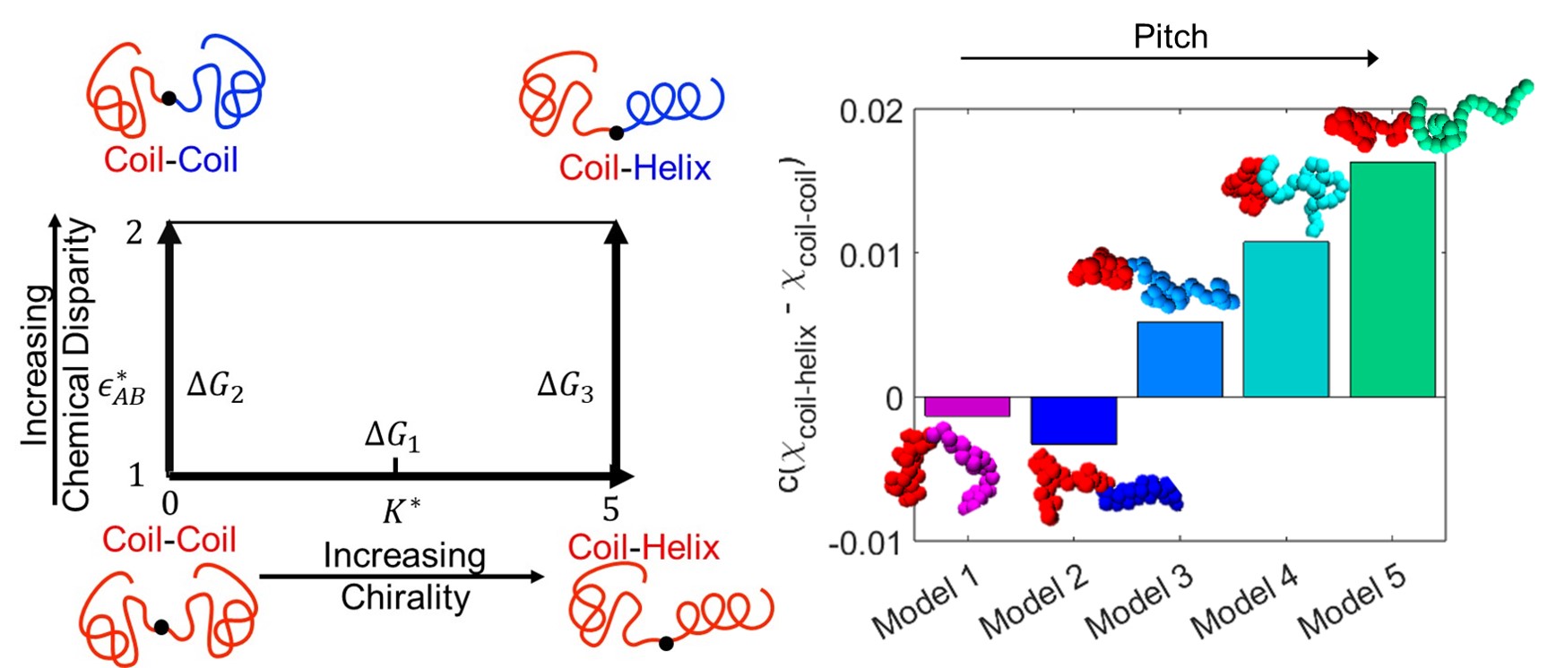 9. M. J. Grant*, B. J. Fingler^, N. Buchanan*, P. Padmanabhan, ‘Coil-helix block copolymers can exhibit divergent thermodynamics in the disordered phase’, Journal of Chemical Theory and Computation, accepted (2023).
