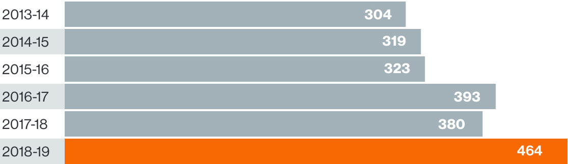 Last year, 464 students participated in study abroad programs—up from 304 students five years ago.