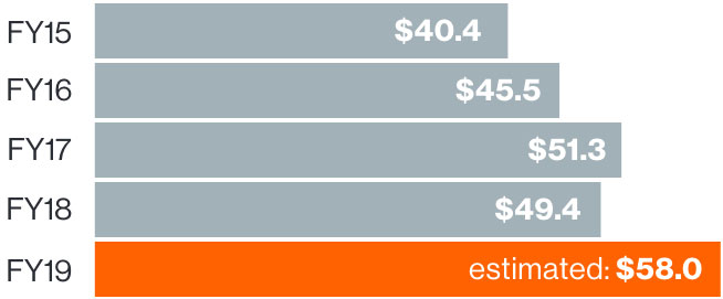Fiscal Year 2019: Total operating revenues: $602,171,000