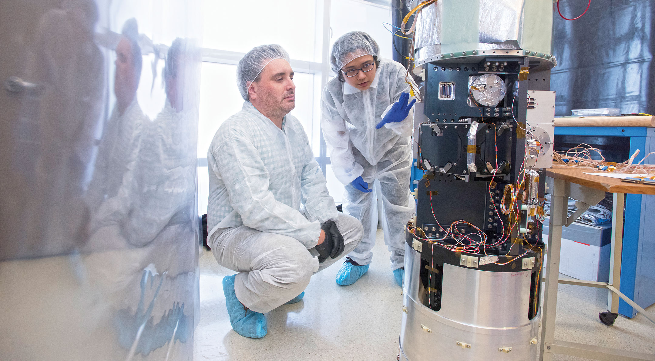 Assistant Professor Michael Zemcov and Ph.D. student Chi Nguyen work on an observational cosmology project called the Cosmic Infrared Background ExpeRiment-2 (CIBER-2).