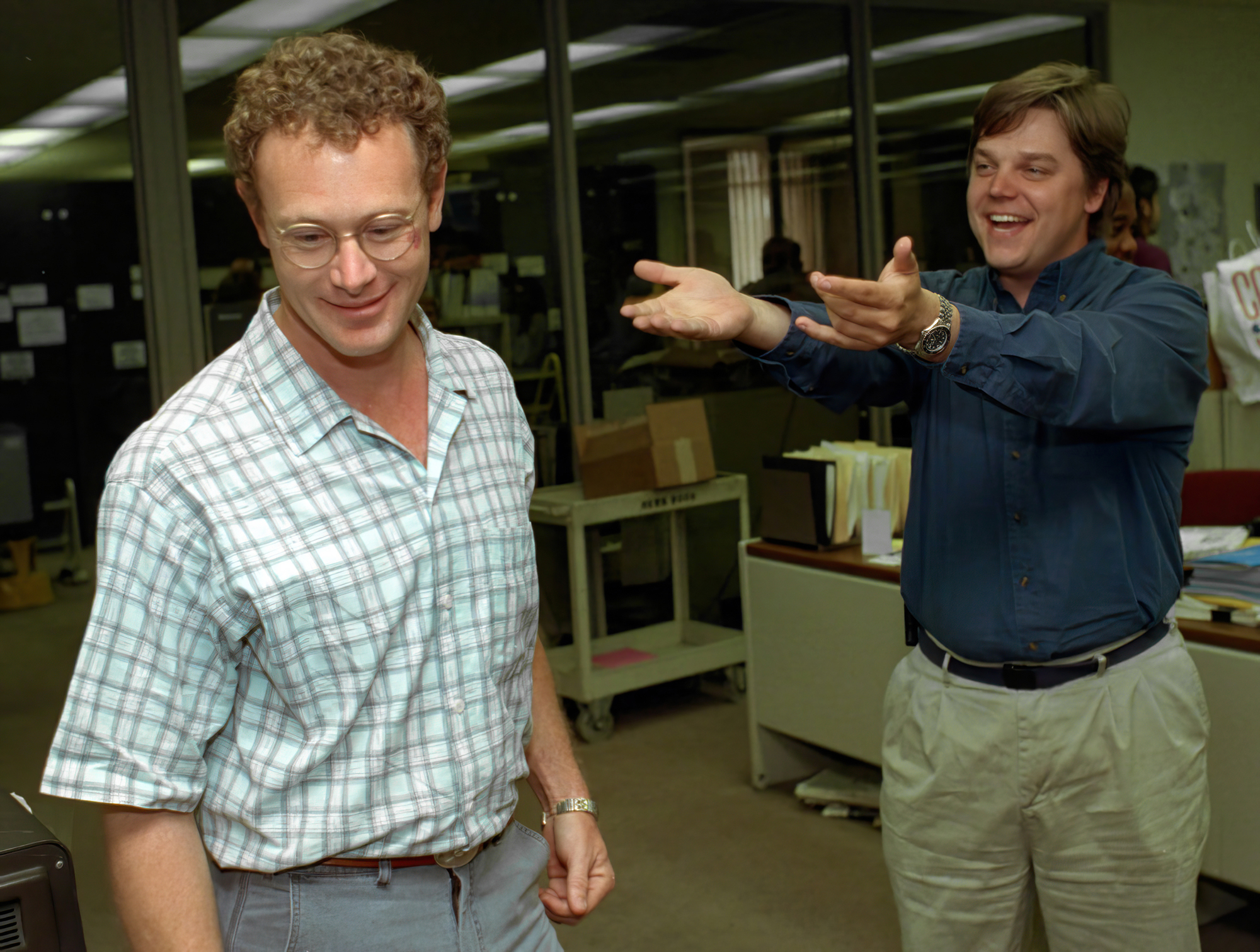 Geiger, left, and Snyder celebrate their shared Pulitzer Prize in Spot News Photography for their coverage of the 1992 Summer Olympics.