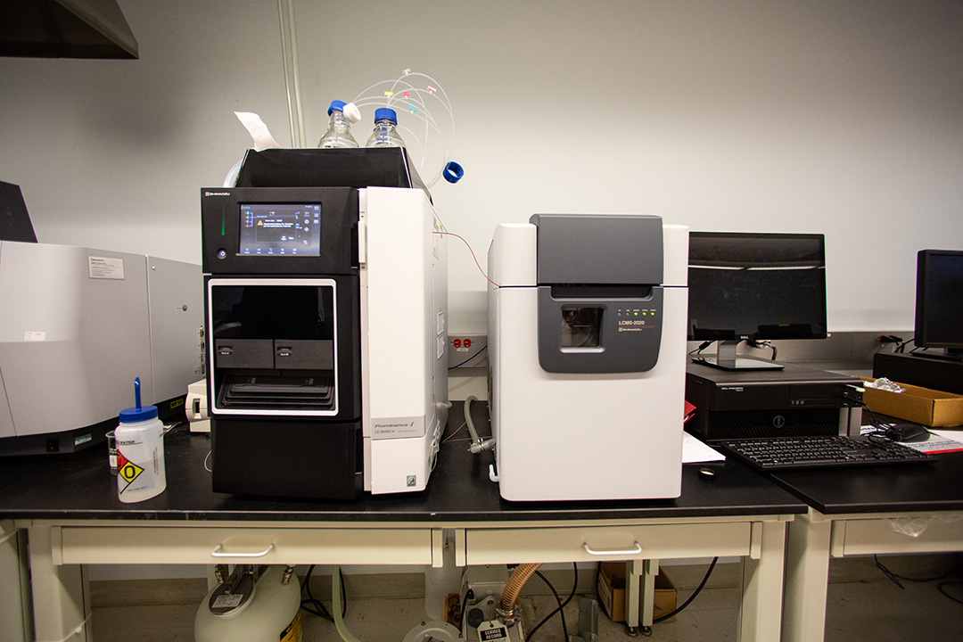 Ultra hi-pressure Liquid chromatography–mass spectrometry (UHLC-MS) is an analytical chemistry technique that combines the physical separation capabilities of liquid chromatography (or HPLC) with the mass analysis capabilities of mass spectrometry (MS). This instrument is designed to work at very high performance for quick analyses of less than one minutes per sample.