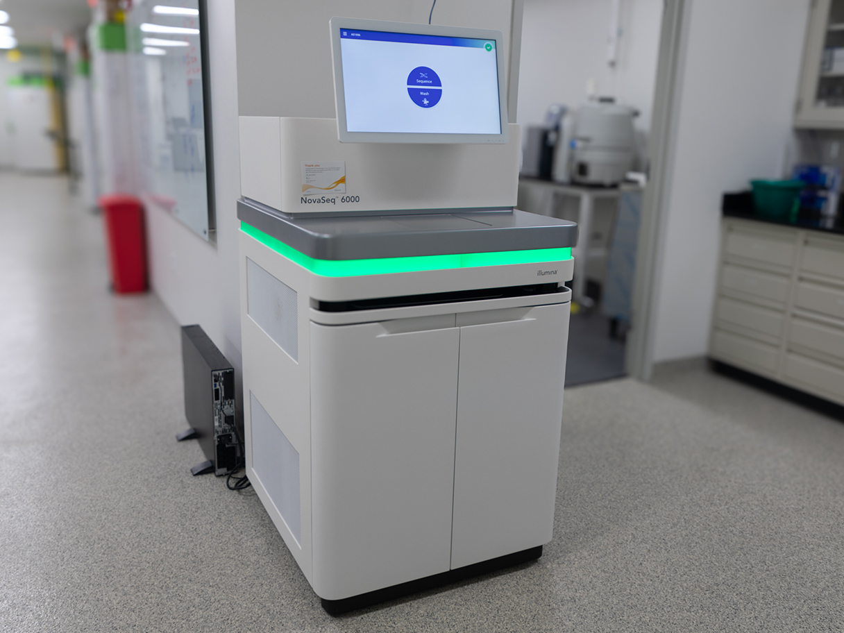 Illumina's NovaSeq 6000 stands as the latest breakthrough in ultra-high throughput NGS sequencing instrumentation. This dual flow cell instrument is meticulously designed to function with four patterned flow cell formats, offering an impressive total sequence data output ranging from 0.08 Tb to 6 Tb. The NovaSeq is adaptable, supporting the use of the more cost-effective SBS v1.5 chemistry and providing the option for an XP Chemistry upgrade, enabling independent lane addressment. This scalable functionality empowers the Genomics Enterprise Center to address the requirements of a diverse array of sequencing projects, spanning from RNA-seq to Whole Genome Sequencing (WGS). Leveraging Illumina's proven SBS chemistry technology, the NovaSeq ensures superior run times and simplifies operation through RFID-encoded, cartridge-based reagent management.
