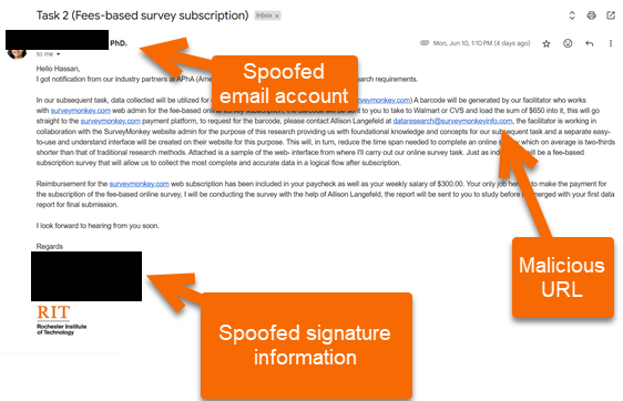 - If you receive a suspicious job offer, report it to the RIT service Center by phone at 585-475-5000, or online at help.rit.edu to open an incident report.