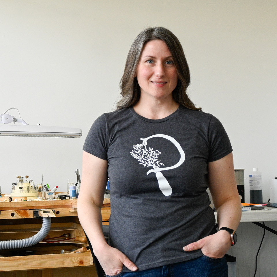 Jolene Beckman is an artist who took an unexpected opportunity to learn the craft of jewelry making. This opened up another facet of her love for handmade goods, and has grown into a small business featuring one-of-a-kind fine jewelry and custom designs. Working from her studio in Batavia, NY, Jolene’s creations combine clean lines and elegant shapes to make timeless pieces for everyday wear.