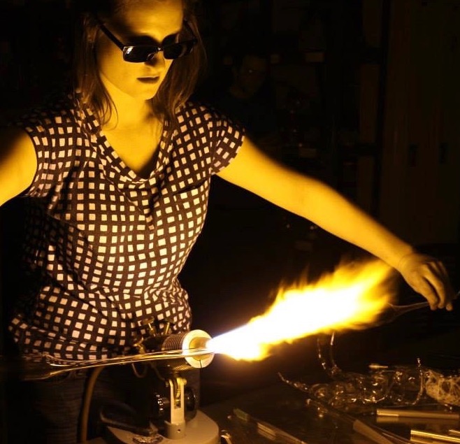 Madeline’s specialty is flame-working that uses a 3600 degree flame to melt and shape glass. Exploring a fascination with science and the natural world, she uses color and pattern to mimic natural forms on a macro and micro scale, that ranges from a delicate flower to an astronomical formation. Layering and combining different glass colors creates nearly infinite possibilities. The atmosphere of the flame, the heat, temperature, and chemistry of the glass all contribute to the ultimate hue of the color.