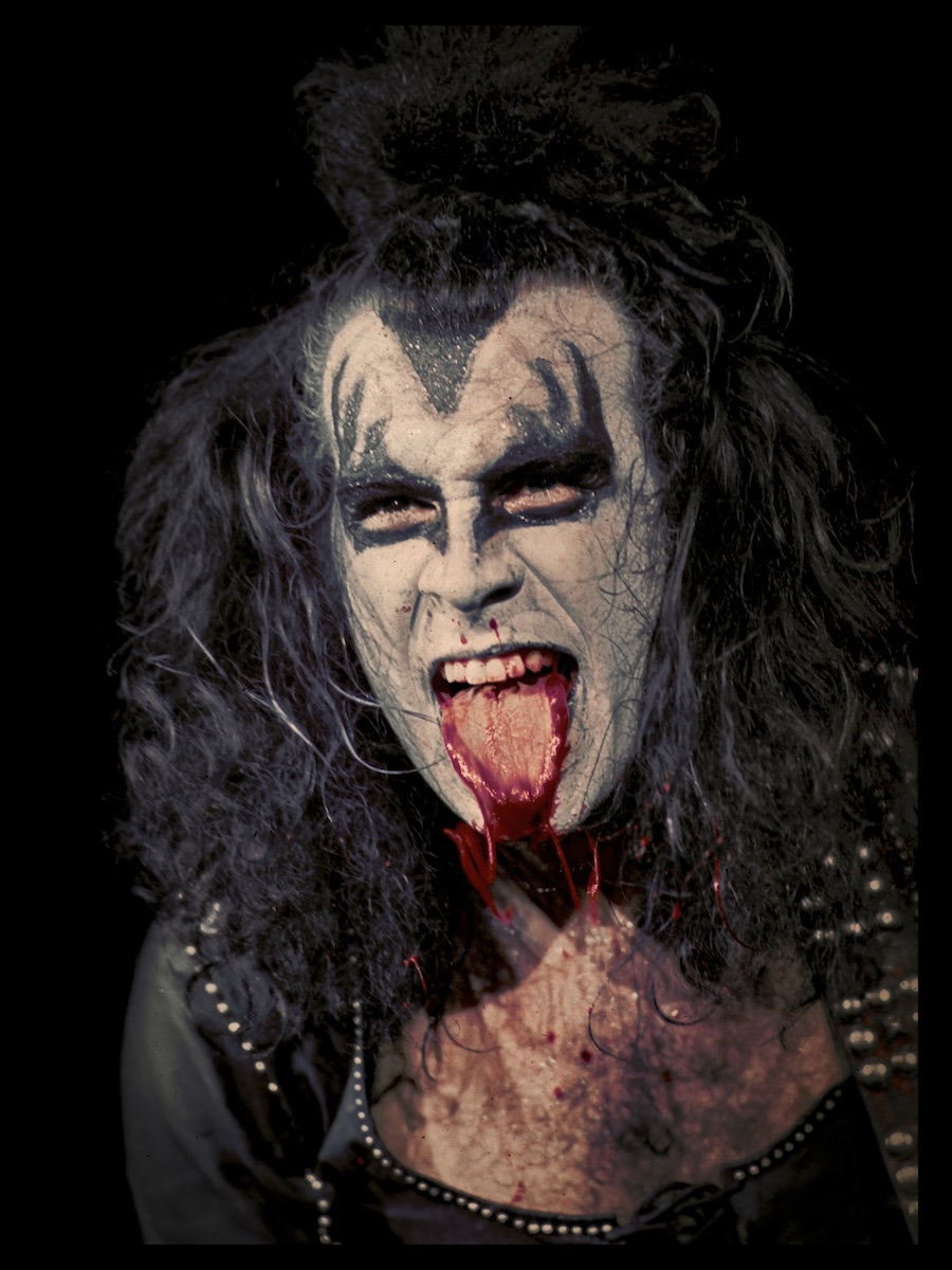- KISS's Gene Simmons drools "blood" during a performance at Roberts Stadium in Evansville, IN on December 8, 1974.